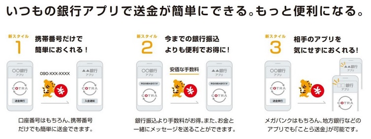 「ことら送金サービス」とは、J-CoinPayのスマートフォンアプリを利用して、個人間での10万円以下の送金を行う、新しい「個人間の小口送金サービス」です。