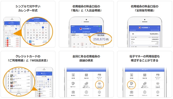 信用組合の定期預金含む預金口座をスマートフォンアプリでかんたんに管理できます。